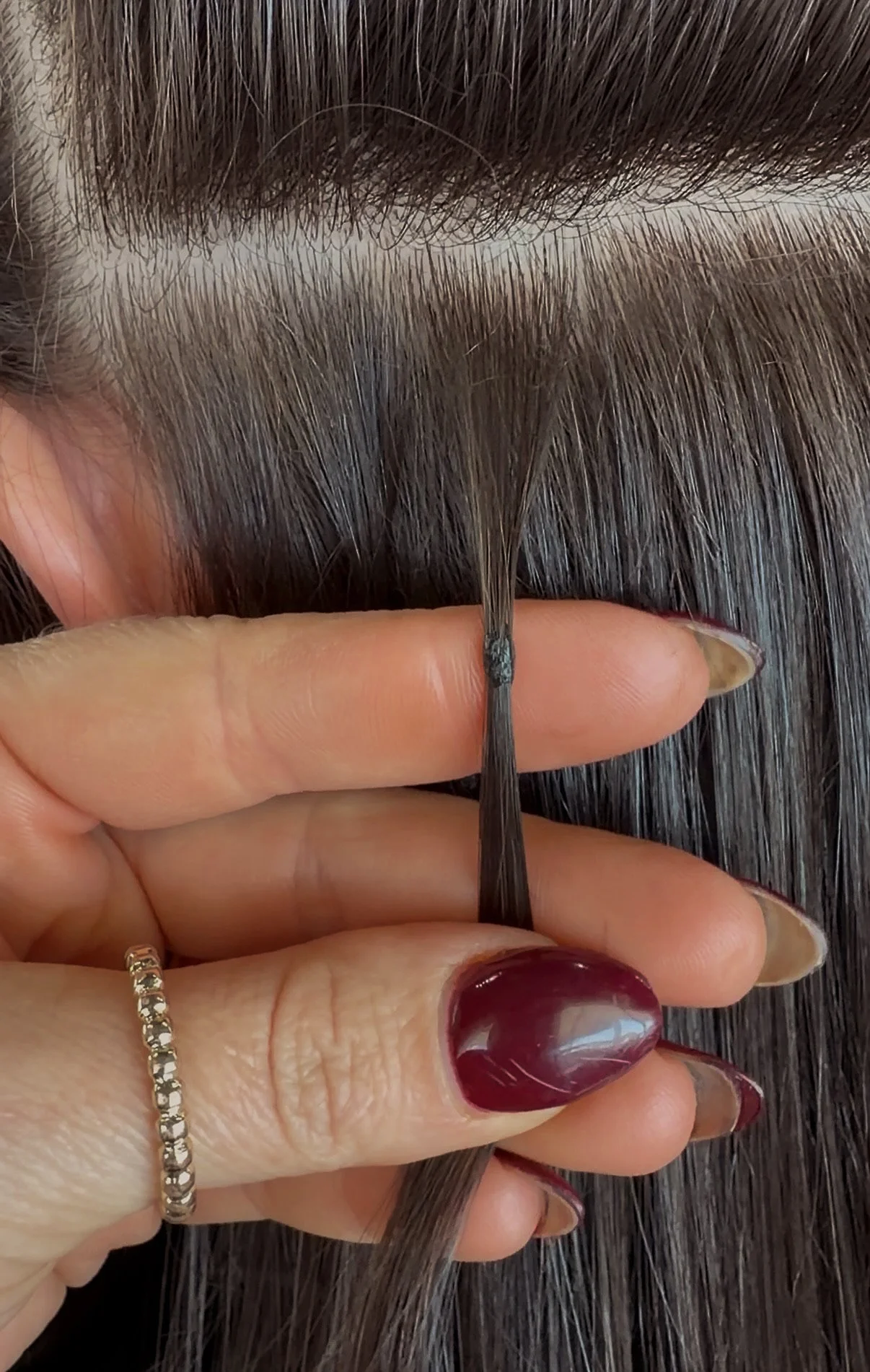 Jaime takes this process a step further by hand-crafting each keratin bond herself rather than relying on pre-manufactured bonds. This allows her to customize the size, weight, and placement of every piece to match your hair’s texture, density, and natural movement.